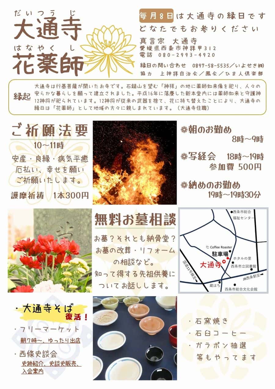 大通寺では、毎月8日にご縁日を行っております。ご家族でお参りをされて、ご縁日に寄って行かれるのを楽しみにしておられる方も多くおられます。
